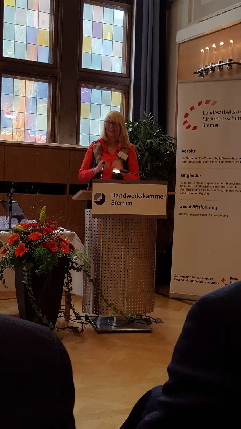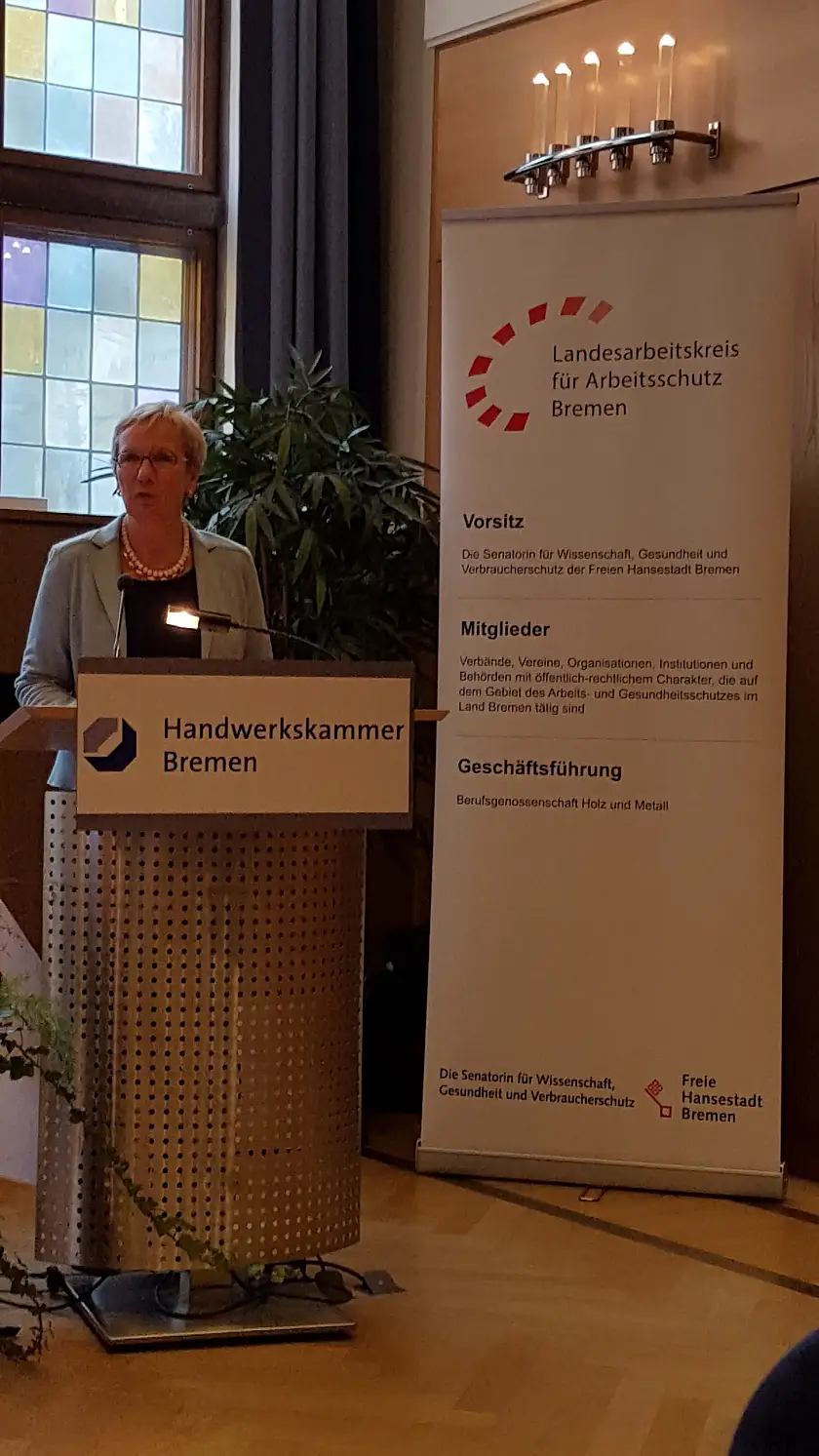 70 Expertinnen und Experten aus dem Arbeitsschutz besuchten die Herbstveranstaltung des LAK Bremen zum Thema „Die neue Betriebssicherheitsverordnung“ in den Räumen der Handwerkskammer Bremen. Nach einer Begrüßung durch den Vizepräses der Handwerks-kammer, Herrn Roy Kahl, sowie einleitender Worte durch die Vorsitzende des LAK, Frau Senatorin Prof. Dr. Eva Quante-Brandt, konnten sich die Teilnehmerinnen und Teilnehmer anhand von drei Vorträgen zu der Novelle der Betriebssicherheitsverordnung und praktischen Umsetzungsfragen informieren. Die Referenten kamen von der Senatorin für Wissenschaft, Gesundheit und Verbraucherschutz (Frau Vogel), der Berufsgenossenschaft Holz und Metall (Herr Preuße) sowie der Gewerbeaufsicht des Landes Bremen (Herr Wedell). Aus den Vorträgen wurde deutlich, dass mit der Novelle der Betriebssicherheitsverordnung nur wenige relevante inhaltliche Änderungen einhergehen, allerdings hat sich der Aufbau deutlich geändert. Zudem erfolgten notwendige rechtliche Anpassungen. Deutlich wurde die Betonung der Verantwortung des Arbeitgebers, was sich nicht zuletzt in der signifikant gestiegenen Anzahl von Ordnungswidrigkeitstatbeständen widerspiegelt. Dies wird auch die Gewerbeaufsicht als Vollzugsbehörde sehr beschäftigen, deren Hauptfokus bei den Besichtigungen auch weiterhin auf der systematischen Kontrolle der betrieblichen Arbeitsschutzorganisation liegt. Arbeitsmittel und Anlagen werden dabei entsprechend mit erfasst. Mit der Integration von psychischen Belastungen in der Verordnung wird den neuen rechtlichen Vorgaben und Entwicklungen im Arbeitsschutz Rechnung getragen. Dass die neue Betriebssicherheitsverordnung in Kürze wieder geändert werden wird, war sicherlich auch eine weitere interessante Botschaft dieser Veranstaltung. Nach den Referaten wurden zentrale Inhalte im Rahmen einer Podiumsdiskussion mit der Referentin und den Referenten diskutiert sowie konkrete Fragen aus dem Teilnehmerkreis beantwortet.