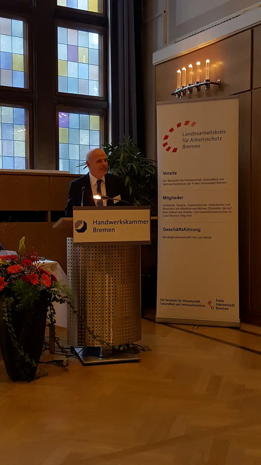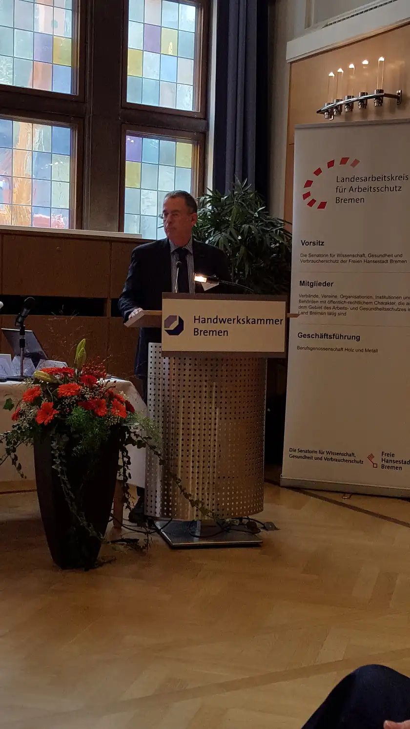 Wenn Sie sich über diese aktuellen Entwicklungen informieren wollen, bietet die Frühjahrs-veranstaltung des LAK Bremen somit eine gute Möglichkeit. Sei es in Ihrer Aufgabe als ArbeitgeberIn, als Betriebsrätin/-rat, als Sicherheitsfachkraft, ArbeitsmedizinerIn, Gewerbe-aufsichtsbeamtin/-beamter oder Aufsichtsperson einer Berufsgenossenschaft.