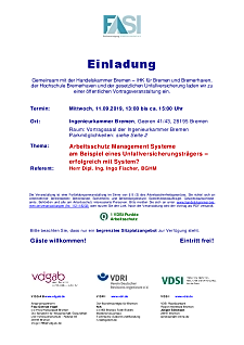 Gemeinsam mit der Handelskammer Bremen – IHK für Bremen und Bremerhaven, der Hochschule Bremerhaven und der gesetzlichen Unfallversicherung lädt die Fachvereinigung Arbeitssicherheit e.V. (FASI) zu der öffentlichen Vortragsveranstaltung ein.