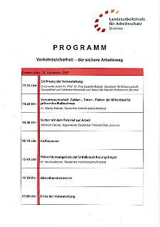 Während der Kaffeepause besteht die Gelegenheit zum Gedankenaustausch untereinander, sowie mit den Referentinnen und Referenten. Im Schlussvortrag wird auf die Präventionsangebote der Unfallversicherungsträger sowie auf ein Bremer Projekt eingegangen.